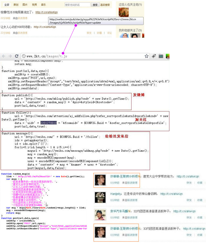在新浪名人堂中,当提交http://weibo.com/pub/star/g/xyyyd“>?type=update时,新浪会对该字符进行处理,变成类似http://weibo.com/pub/star.php?g=xyyyd”>?type=update,而由于程序没有对g做充足的过滤,且将参数值直接显示在页面中